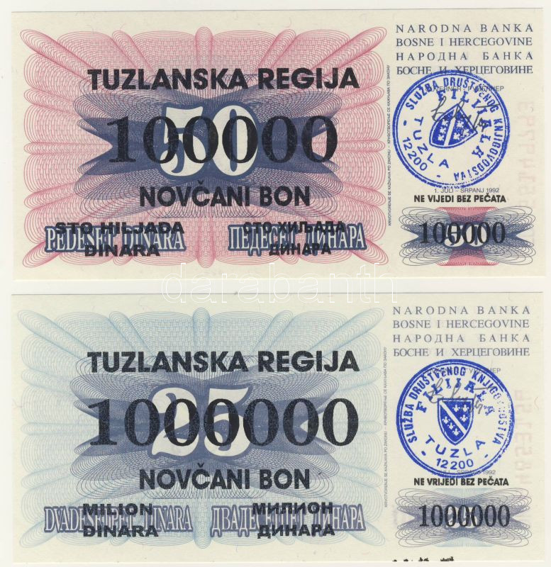 Bosznia 1992. 25D, 50D "Tuzlanska Regija 100.000D ill. 1000.000D felül... https://www.darabanth.com/hu/63-Gyorsarveres/63.0/Numizmatika/NUMIZMATIKA-NUMIZMATICS~282/Bosznia-1992-25D-50D-Tuzlanska-Regija-100000D-ill-1000000D-felulbelyegzes-TI~II124785