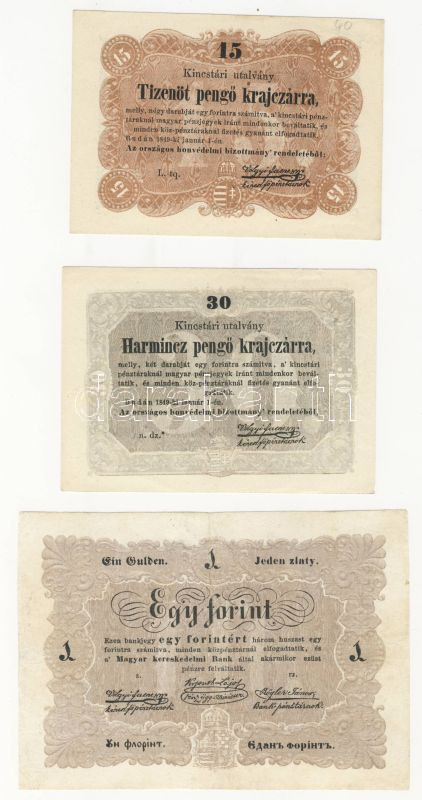 1848-49. "Kossuth bankók" 15kr hátoldal ferdén nyomva! T:I-, 30kr "*"-... https://www.darabanth.com/hu/65-Gyorsarveres/65.0/Numizmatika/NUMIZMATIKA-NUMISMATICS~246/1848-49-Kossuth-bankok-15kr-hatoldal-ferden-nyomva-TI--30kr-gal-TI--1Ft-Trestauralt~II127751