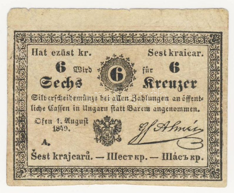 Leírás: 1849. 6e.kr "Almássy" T:II- felül kicsit jav.