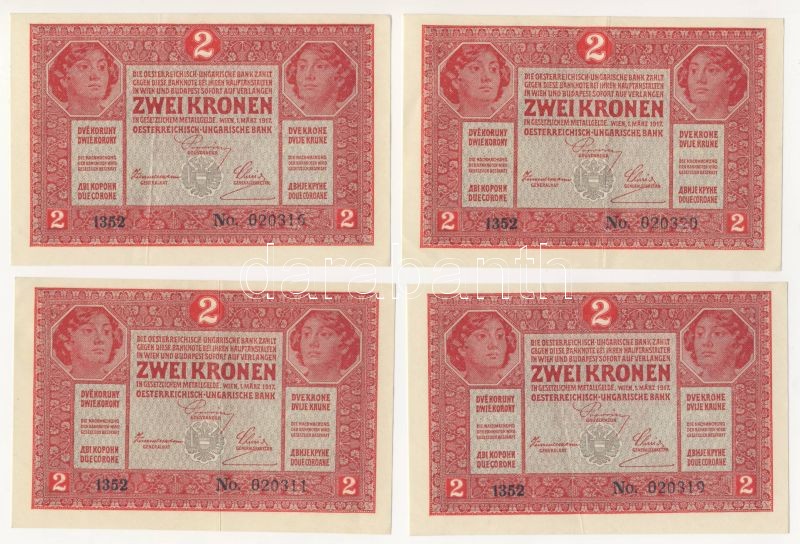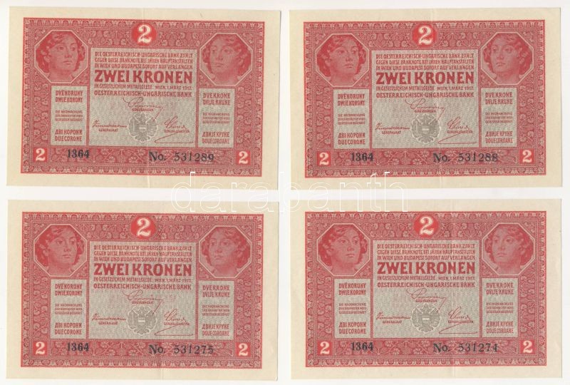 1917. 2K (12x) párok vagy több darab egymásutáni sorszámokkal T:II+ Cs... https://www.darabanth.com/hu/65-Gyorsarveres/65.0/Numizmatika/NUMIZMATIKA-NUMISMATICS~246/1917-2K-12x-parok-vagy-tobb-darab-egymasutani-sorszamokkal-TIIplus-Csak-egyszer-hajtva~II127835