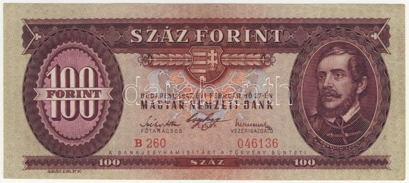 Leírás: 1947. 100Ft T:II+ Csak egyszer hajtva, törve nem!