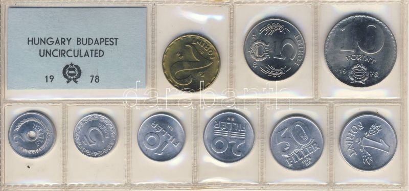 1978. 2f-10Ft komplett szet eredeti műanyag csomagolásban T:BU https://www.darabanth.com/hu/65-Gyorsarveres/65.0/Numizmatika/NUMIZMATIKA-NUMISMATICS~246/1978-2f-10Ft-komplett-szet-eredeti-muanyag-csomagolasban-TBU~II127284