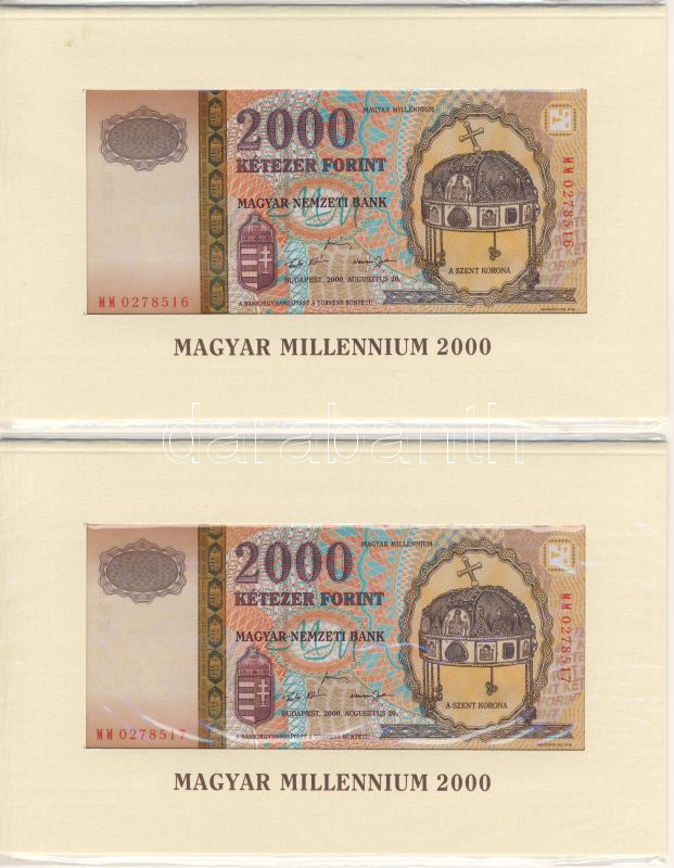 Leírás: 2000. 2000Ft "Millenium" (2x) erdeti bontatlan díszcsomagolásban egymásutáni sorszámokkal! T:I