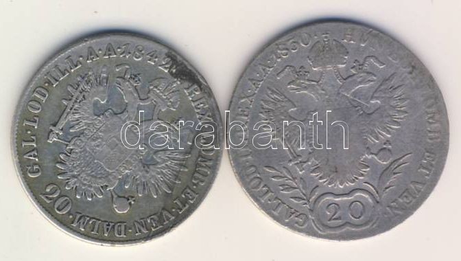 Leírás: Ausztria/magyar verdejel 1830E 20Kr Ag T:4+ + 1842E 20Kr Ag T:3 fny