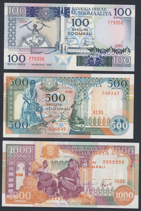 Leírás: Szomália 1983-1996. 5Sh,10Sh,20Sh,50Sh,100Sh,500Sh,1000Sh T:I