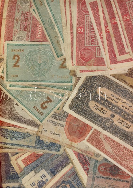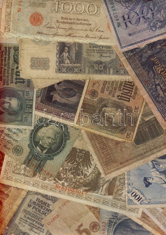 Nagy hagyaték tétel több, mint 3000db bankjegy egész világ, régi és új, sok magyarral (korona, pengő, súlypont infláció, forint). Jobb országokkal és darabokkal, többek között Német Birodalom, orosz, osztrák és még sok más! Viszonteladásra és továbbgyűjtésre egyaránt alkalmas! T:II,III,IV A képeken természetesen csak töredéke látható az egész tételnek!