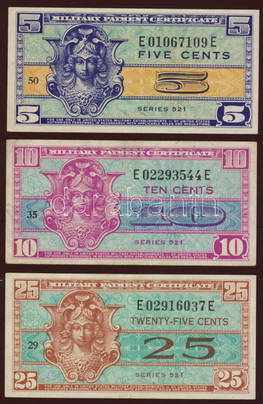 USA/katonai kiadás 1954. 5c, 10c, 25c T:II https://www.darabanth.com/hu/69-Gyorsarveres/69.0/Numizmatika/Kulfoldi-bankjegyek~249/USAkatonai-kiadas-1954-5c-10c-25c-TII~II136002