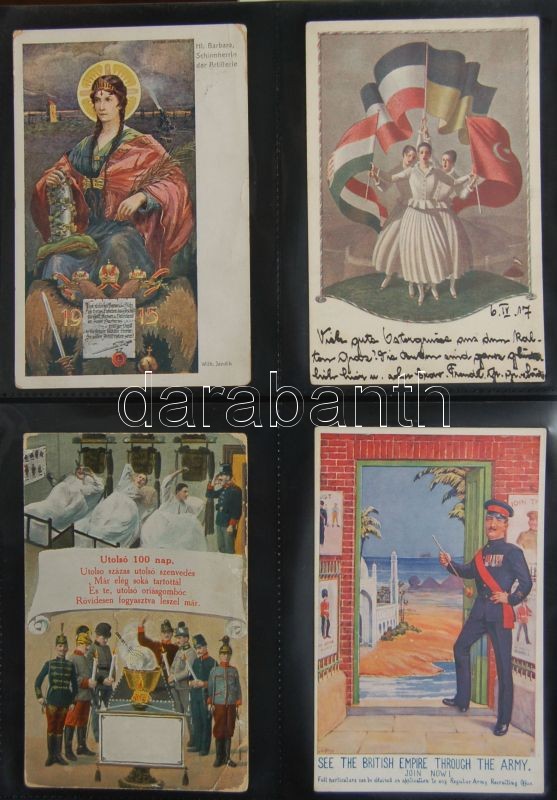 MILITÁRIA, I. világháború, uralkodók, hadvezérek, Kossuth, Rákóczi stb 960 darabos képeslapgyűjtemény 3 albumban rengeteg jó lappal, jó minőségű anyag / MILITARY, 1st World War, royalty, patriotism collection, good quality material with a lot of better pieces in 3 albums, 960 pcs