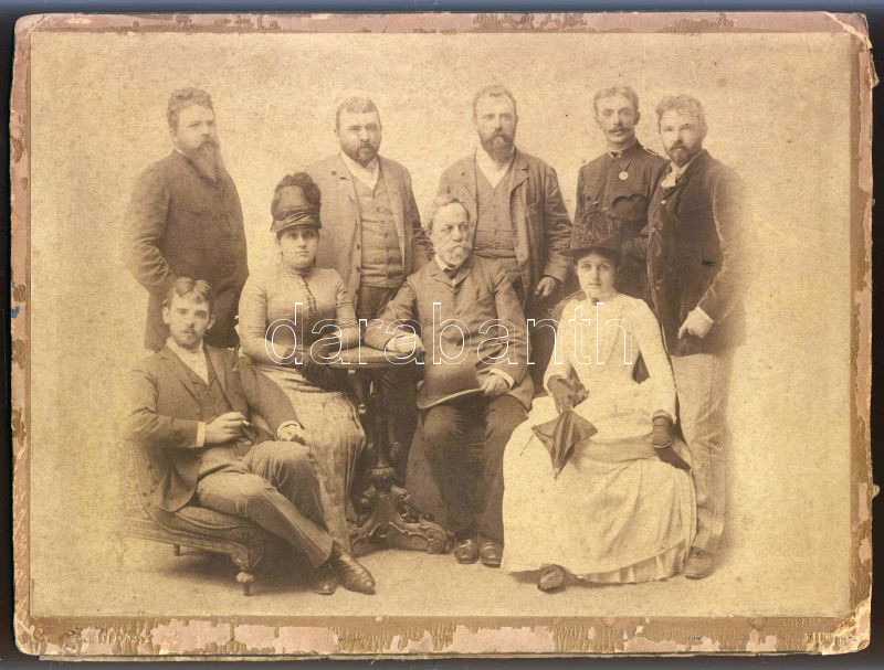 1888 Jókai Mór és Feszty Árpád a Jókai Róza és Feszty Árpád esküvője alkalmából készült családi fotón (a sarkok megviseltek)/ Wedding photo with Jókai Mór and Feszty Árpád 28x21cm