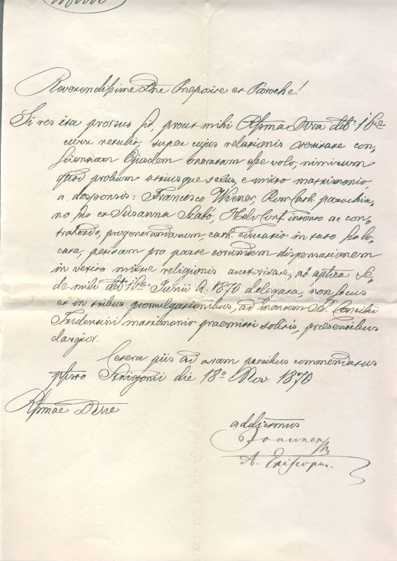 Leírás: 1870 Simor János hercegprímás aláírása levélen