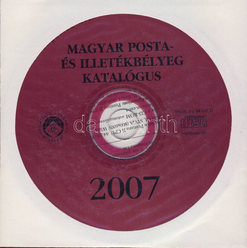 2007 Magyar Posta és Illetékbélyeg Katalógus CD-ROM https://www.darabanth.com/hu/70-Gyorsarveres/70.0/Filatelia/KATALOGUSOK~4/2007-Magyar-Posta-es-Illetekbelyeg-Katalogus-CD-ROM~II139916