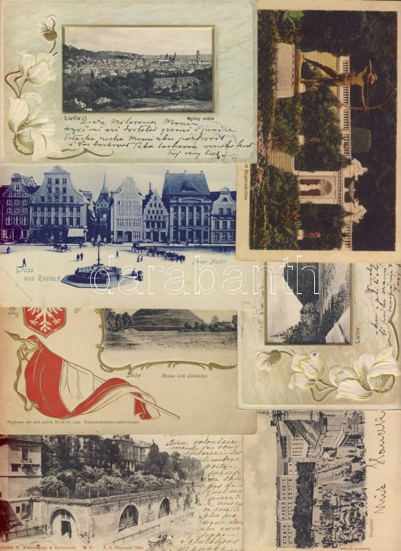 Leírás: 7db lengyel és német képeslap