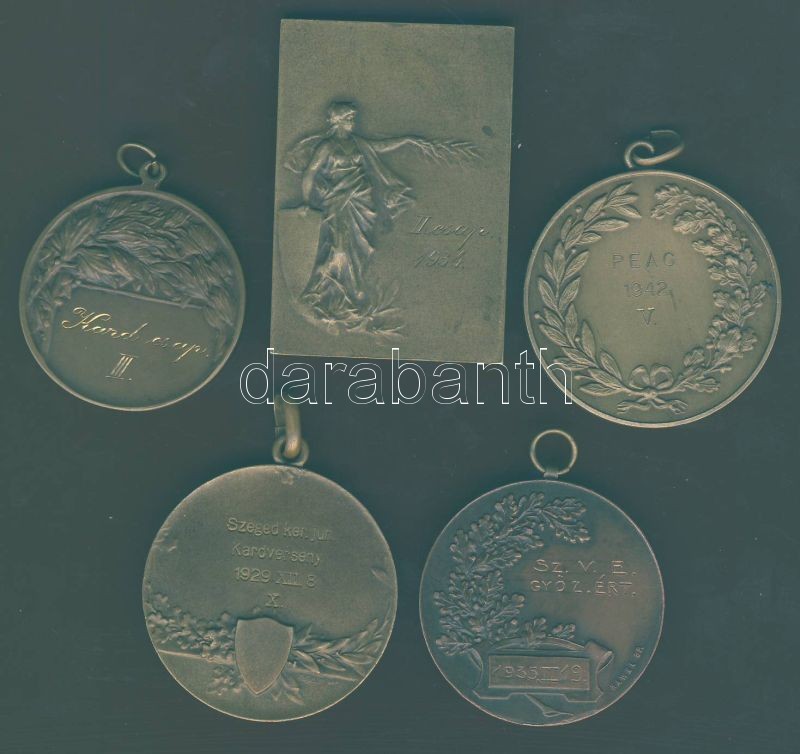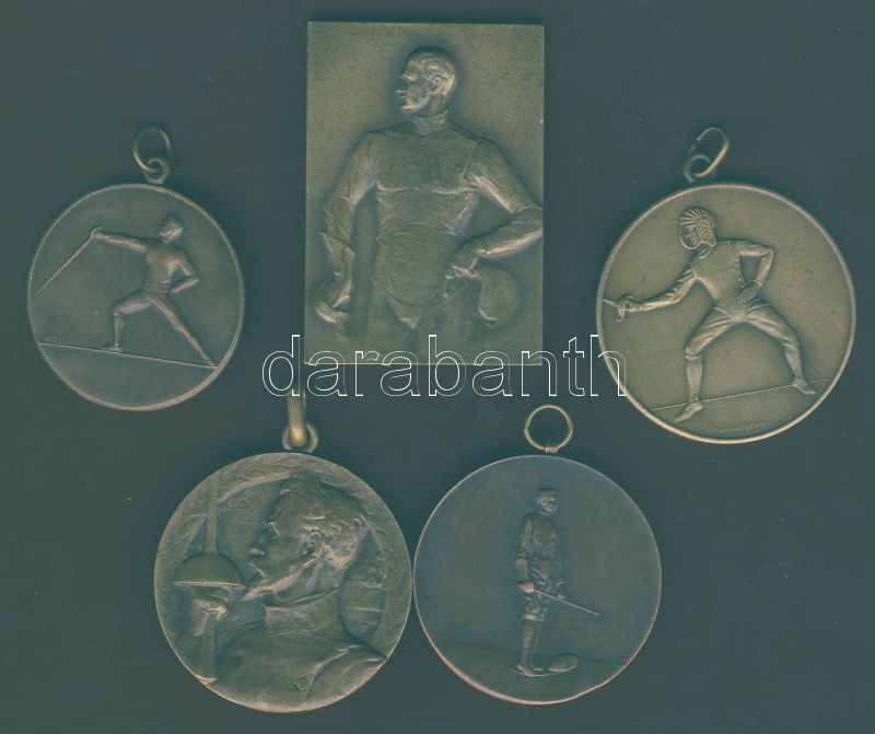 Leírás: 1922-42. 4db Br díjérme + 1db Br plakett "vívó" motívummal, benne szignáltak T:2