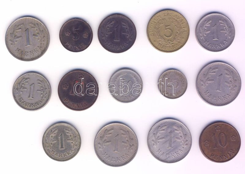 Finnország 1921-41. 5p (1x), 10p (2x), 25p, 30p (1x), 1M 3klf típusban... https://www.darabanth.com/hu/70-Gyorsarveres/70.0/Numizmatika/Kulfoldi-fem-es-ezustpenzek~259/Finnorszag-1921-41-5p-1x-10p-2x-25p-30p-1x-1M-3klf-tipusban-8x-5M-1x-T2-23~II140388