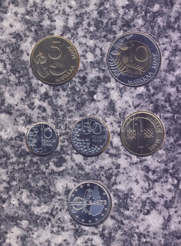 Finnország 1999. 10p-10M 5klf db + 1 emlékérem szettben T:BU https://www.darabanth.com/hu/70-Gyorsarveres/70.0/Numizmatika/Kulfoldi-fem-es-ezustpenzek~259/Finnorszag-1999-10p-10M-5klf-db-plus-1-emlekerem-szettben-TBU~II140600
