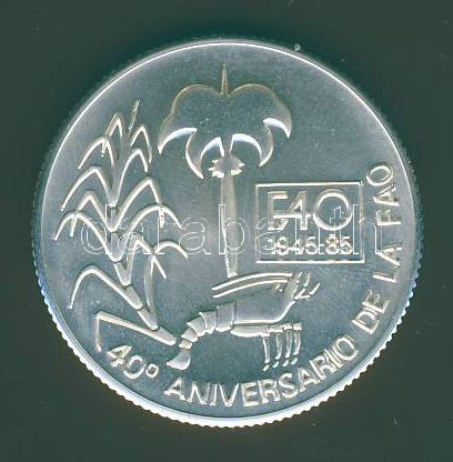 Leírás: Kuba 1985. 5P Ag "FAO 40. évfordulója" tanúsítvánnyal T:1