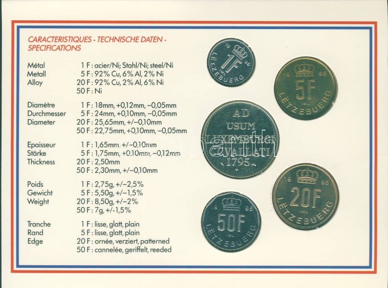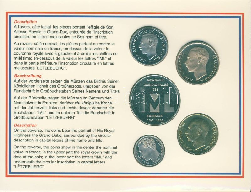 Leírás: Luxemburg 1995. 1F-50F 4klf db + 1db emlékérem, díszes szettben T:BU