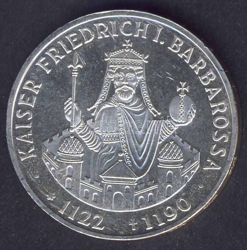 NSZK 1990. 10DM Ag "Barbarossa" T:1 https://www.darabanth.com/hu/70-Gyorsarveres/70.0/Numizmatika/Kulfoldi-fem-es-ezustpenzek~259/NSZK-1990-10DM-Ag-Barbarossa-T1~II140266