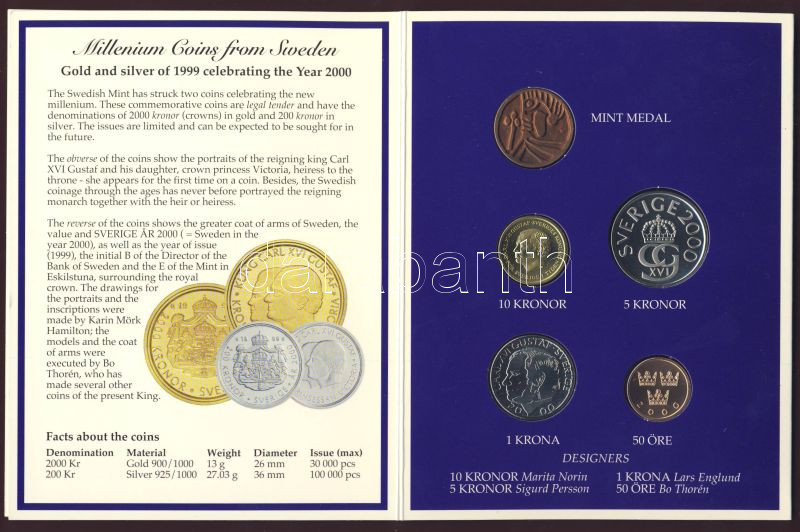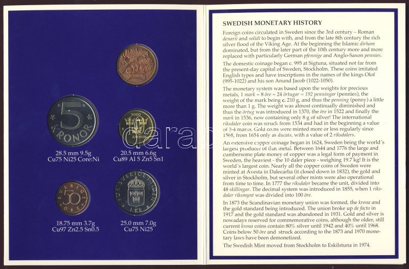 Leírás: Svédország 1999. 50ö-10Kr 4klf db + 1db emlékérem, szettben T:BU