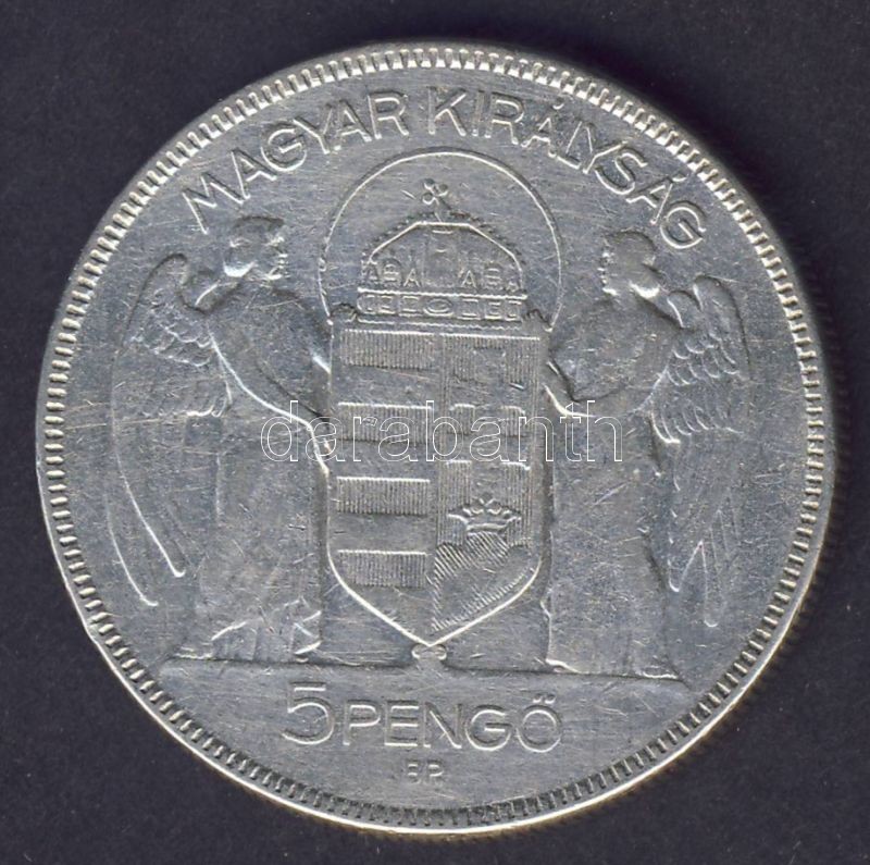 1930. 5P Ag "Horthy jobbra" T:3 https://www.darabanth.com/hu/70-Gyorsarveres/70.0/Numizmatika/Magyar-es-magyar-verdejelu-fem-es-ezustpenzek~260/1930-5P-Ag-Horthy-jobbra-T3~II140276