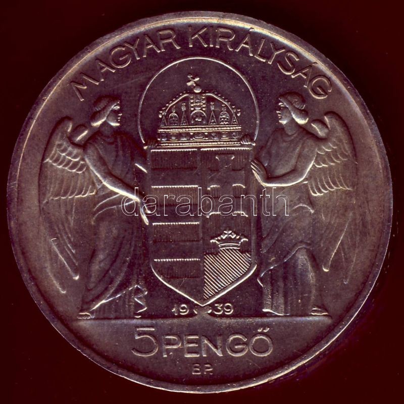 1939. 5P Ag "Horthy balra" T:1 https://www.darabanth.com/hu/70-Gyorsarveres/70.0/Numizmatika/Magyar-es-magyar-verdejelu-fem-es-ezustpenzek~260/1939-5P-Ag-Horthy-balra-T1~II140459