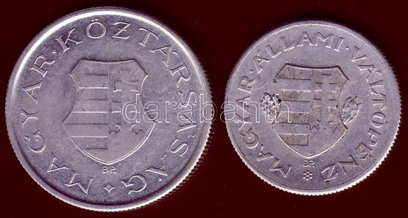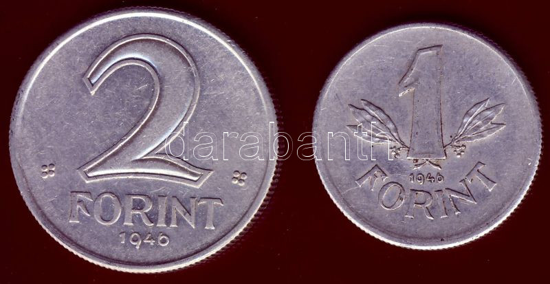 https://www.darabanth.com/hu/70-Gyorsarveres/70.0/Numizmatika/Magyar-es-magyar-verdejelu-fem-es-ezustpenzek~260/1946-1Ft-plus-2Ft-T3plus~II140330