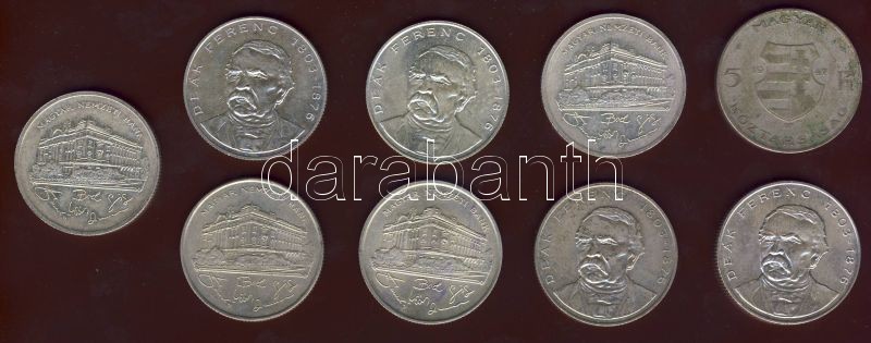 1947. 5Ft Ag "Kossuth" (1x) T:2/3 + 1992. 200Ft Ag "MNB" (2x) + 1993. 200Ft Ag "MNB" (2x) + 1994. 200Ft Ag "Deák" (3x) + 1995. 200Ft Ag "Deák" (1x) T:BU, BUex összesen 9 db