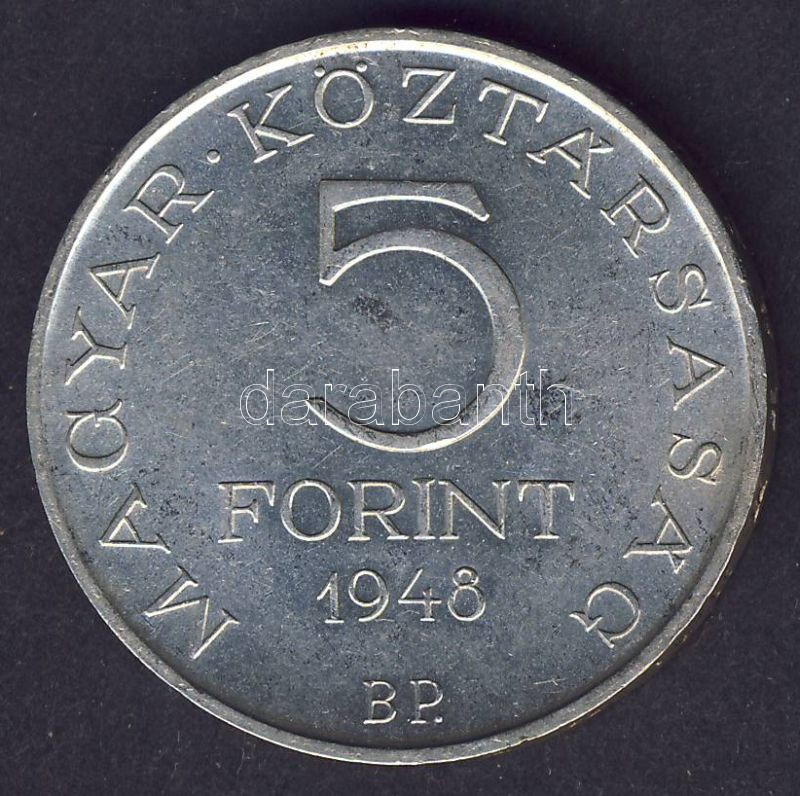 https://www.darabanth.com/hu/70-Gyorsarveres/70.0/Numizmatika/Magyar-es-magyar-verdejelu-fem-es-ezustpenzek~260/1948-5Ft-Petofi-T2~II140260