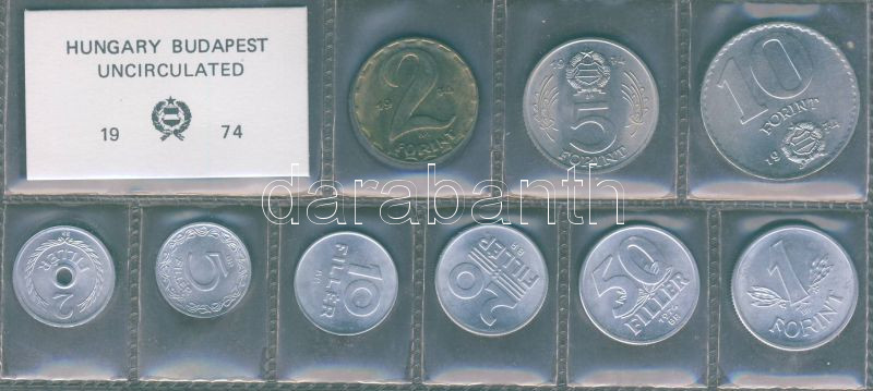 1974. 2f-10Ft 9klf db, szettben T:1 https://www.darabanth.com/hu/70-Gyorsarveres/70.0/Numizmatika/Magyar-es-magyar-verdejelu-fem-es-ezustpenzek~260/1974-2f-10Ft-9klf-db-szettben-T1~II140715