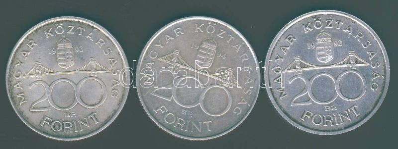 Leírás: 1992,93,94. 200Ft Ag "MNB-Deák" T:2,BU