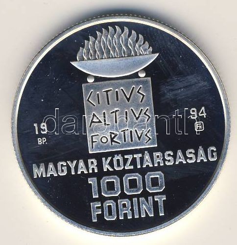 1994. 1000Ft Ag "Nyári olimpia-Atlanta" T:PP https://www.darabanth.com/hu/70-Gyorsarveres/70.0/Numizmatika/Magyar-es-magyar-verdejelu-fem-es-ezustpenzek~260/1994-1000Ft-Ag-Nyari-olimpia-Atlanta-TPP~II123606