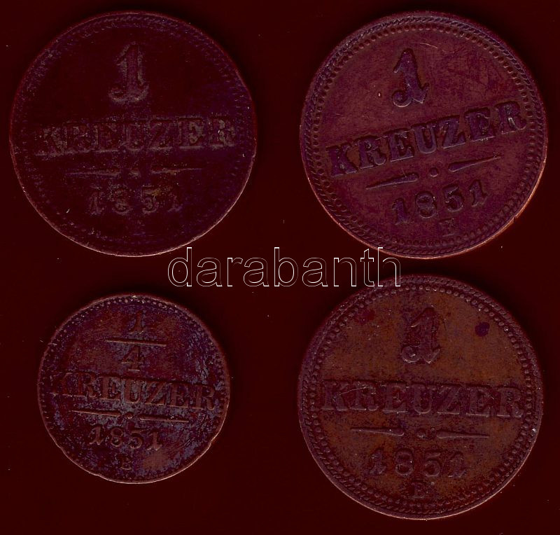 Leírás: Ausztria/magyar verdejel 1851B 1/4Kr (1x), 1Kr (3x) T:3