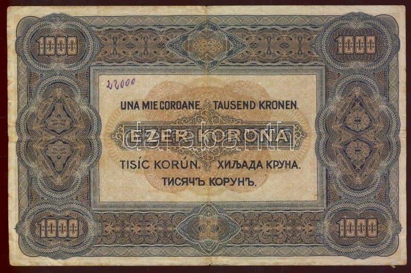 https://www.darabanth.com/hu/70-Gyorsarveres/70.0/Numizmatika/Osztrakmagyar-magyar-es-magyar-vonatkozasu-bankjegyek~252/1920-1000K-TIII~II140620