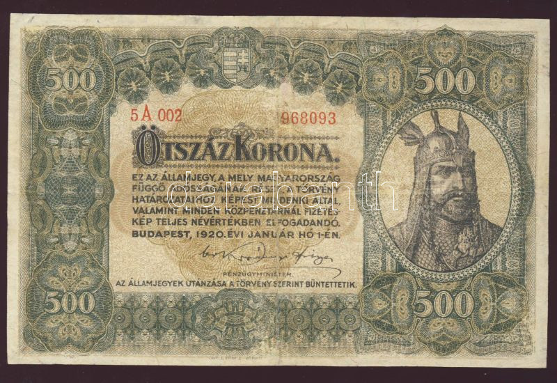 https://www.darabanth.com/hu/70-Gyorsarveres/70.0/Numizmatika/Osztrakmagyar-magyar-es-magyar-vonatkozasu-bankjegyek~252/1920-500K-Trestauralt~II140724
