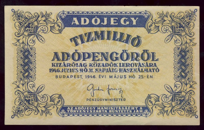 1946. 10.000.000AP hátlapon erős fehér lemezhiba T:I https://www.darabanth.com/hu/70-Gyorsarveres/70.0/Numizmatika/Osztrakmagyar-magyar-es-magyar-vonatkozasu-bankjegyek~252/1946-10000000AP-hatlapon-eros-feher-lemezhiba-TI~II140514