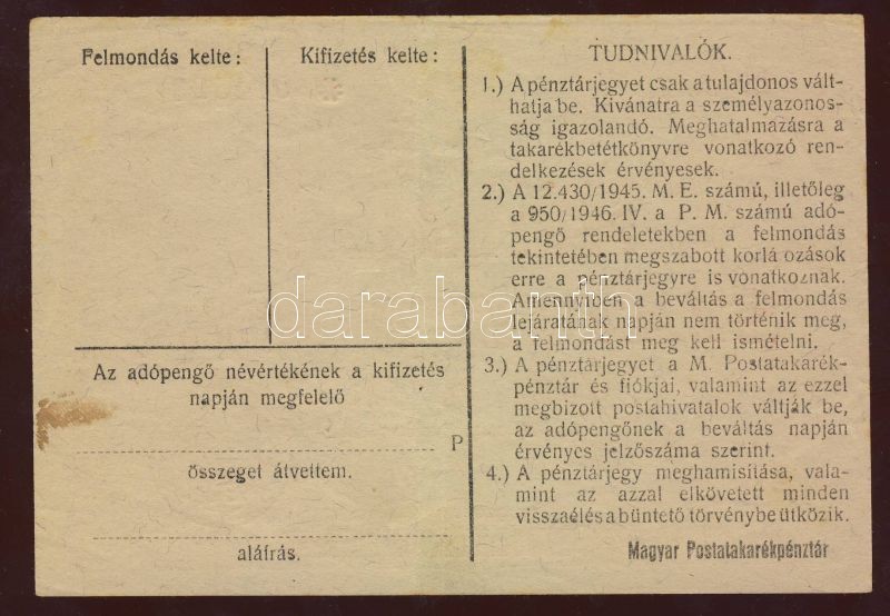 Leírás: 1946. 100.000AP pénztárjegy nagyobb piros festékfolttal T:II