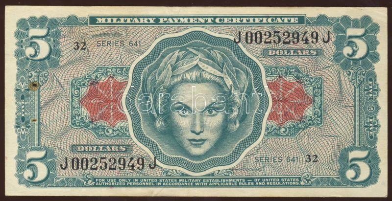 USA/katonai kiadás 1965. 5$ T:I https://www.darabanth.com/hu/71-Gyorsarveres/71.0/Numizmatika/Kulfoldi-papirpenzek~246/USAkatonai-kiadas-1965-5USD-TI~II140826