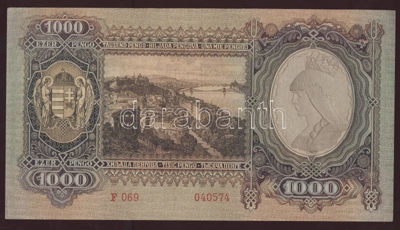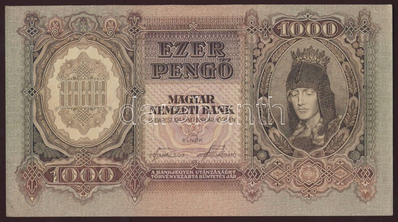 1943. 1000P "Szálasi" T:I https://www.darabanth.com/hu/72-Gyorsarveres/72.0/Numizmatika/Osztrakmagyar-magyar-es-magyar-vonatkozasu-bankjegyek~199/1943-1000P-Szalasi-TI~II144640