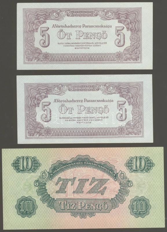 Leírás: 1944. "V.H."-tétel 1P (1x), 2P (2x), 5P (3x), 10P (3x), 20P (2x), 50P (7x), 100P (1x) összesen 19db T:I (többségében),I- (néhány) Benne eltérő méretek, kevés ugrású sorszámok!