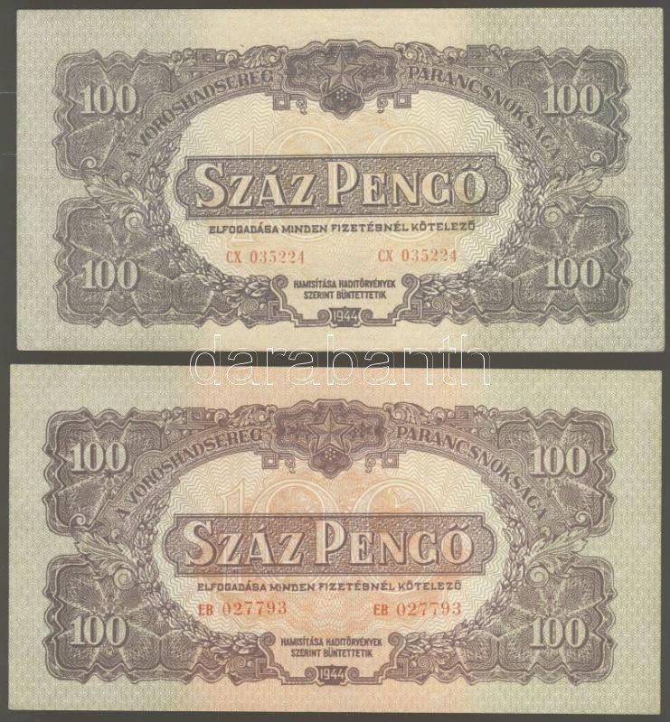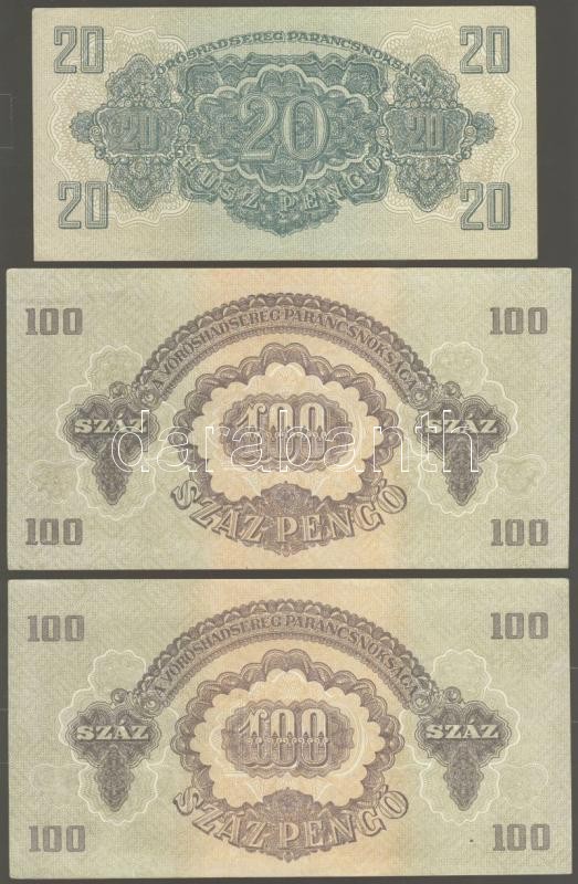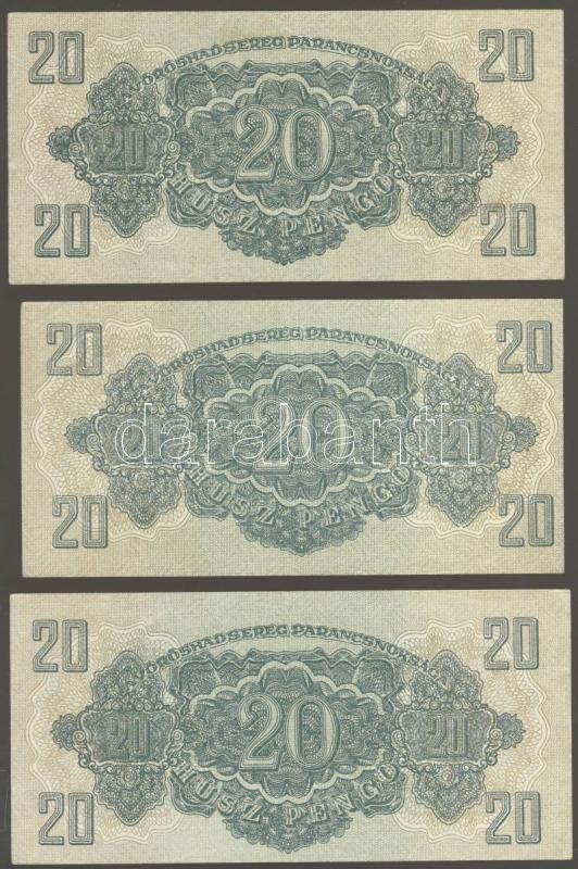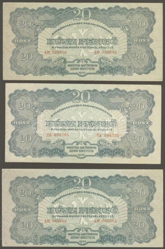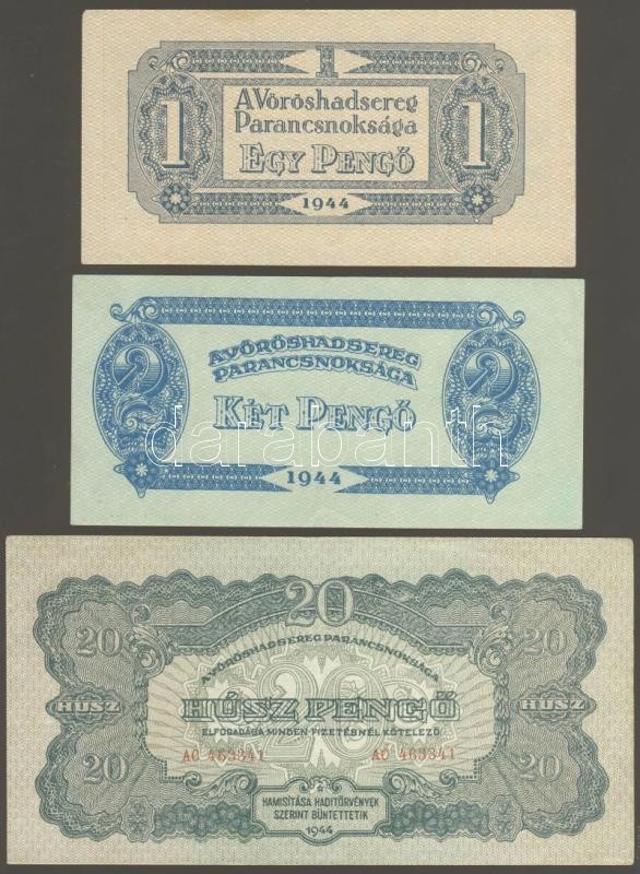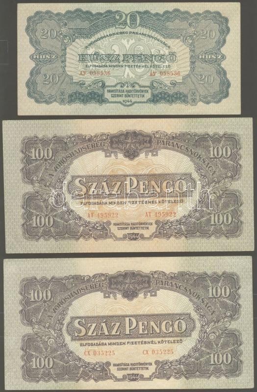 Leírás: 1944. "V.H."-tétel 1P (3x), 1P kis hátoldali méret (2x), 2P (1x), 20P (5x), 100P (4x) T:I-,II+,II Összesen 15db!
