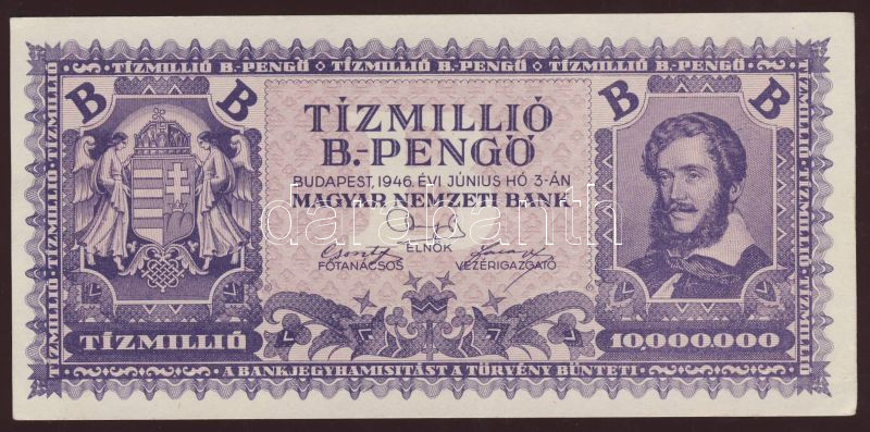 1946. 10.000.000B.-pengő T:I https://www.darabanth.com/hu/72-Gyorsarveres/72.0/Numizmatika/Osztrakmagyar-magyar-es-magyar-vonatkozasu-bankjegyek~199/1946-10000000B-pengo-TI~II144636