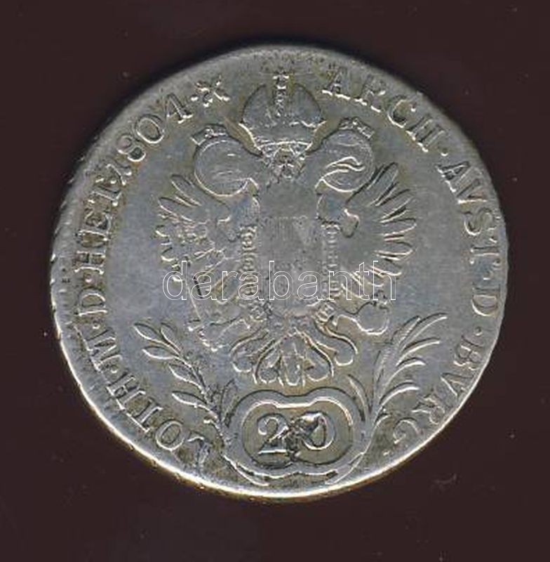 Ausztria/magyar verdejel 1804E 20Kr Ag T:3 https://www.darabanth.com/hu/74-Gyorsarveres/74.0/Numizmatika/Magyar-es-magyar-verdejelu-fem-es-ezustpenzek~281/Ausztriamagyar-verdejel-1804E-20Kr-Ag-T3~II147906