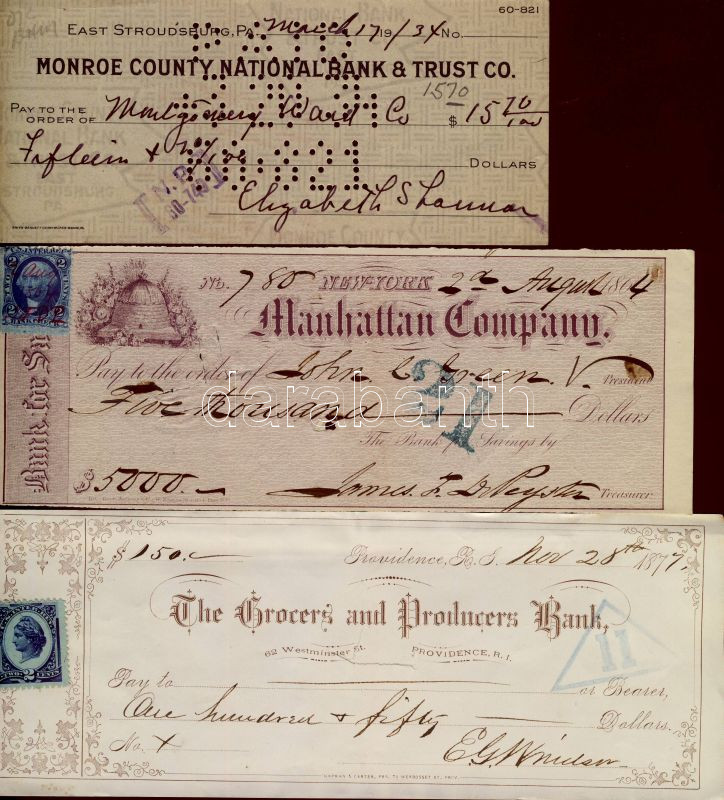 Leírás: USA 1864+1877+1934. 3db klf csekk