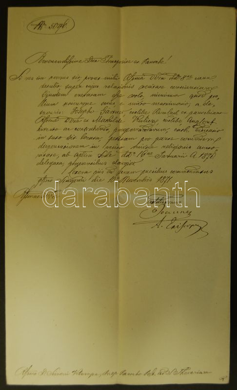 Leírás: cca 1880 Csernoch János hercegprímás aláírása levélen