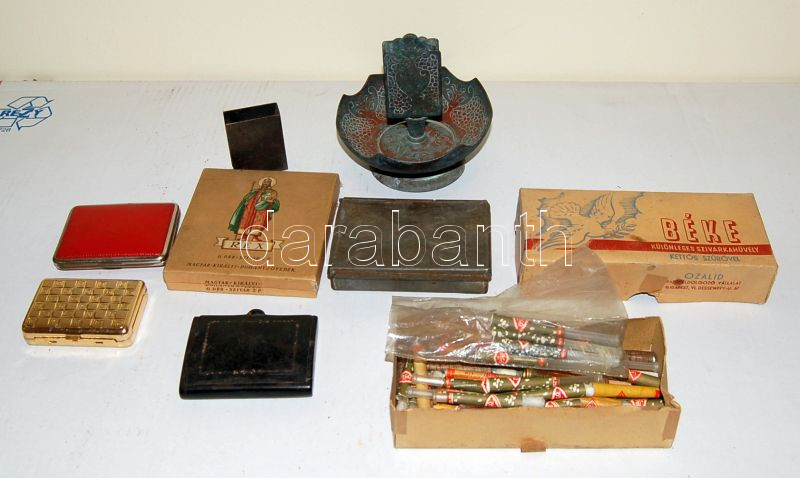Dohányos tétel: cigarettatárcák, tartók https://www.darabanth.com/hu/76-Gyorsarveres/76.0/Festmeny-mutargy-papirregiseg-egyeb/Bolhapiac-Flea-market~228/Dohanyos-tetel-cigarettatarcak-tartok~II152486