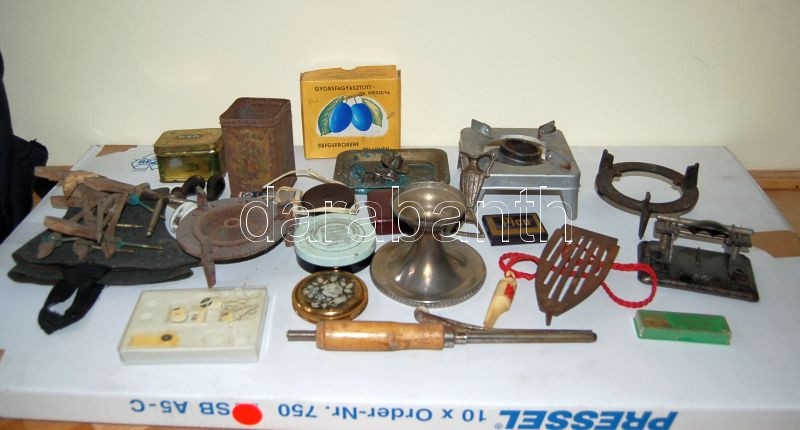 Vegyes régiség tétel: háztartási eszközök, dobozok, piperecikkek, úttö... https://www.darabanth.com/hu/76-Gyorsarveres/76.0/Festmeny-mutargy-papirregiseg-egyeb/Bolhapiac-Flea-market~228/Vegyes-regiseg-tetel-haztartasi-eszkozok-dobozok-piperecikkek-uttorosip-stb~II152495