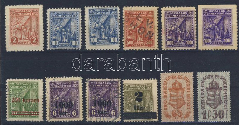 Leírás: 1922-1927 Országos gyermekvédő liga liga 10db+gyám- és nyugdíjintézet 2db
