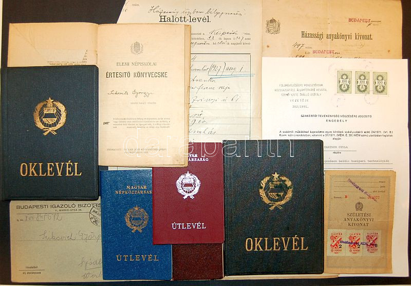 Vegyes okmány tétel cca 1920-1970 bizonytványok, igazolványok, sok érd... https://www.darabanth.com/hu/76-Gyorsarveres/76.0/Festmeny-mutargy-papirregiseg-egyeb/Okmanyok-Documents~227/Vegyes-okmany-tetel-cca-1920-1970-bizonytvanyok-igazolvanyok-sok-erdekes-irat-kb-60-db~II152455