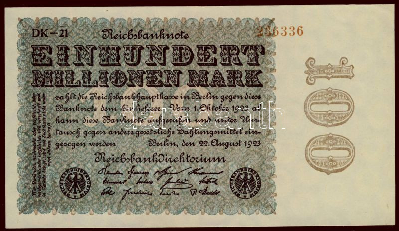 Német Birodalom/Weimar 1923. 100.000.000M T:I- https://www.darabanth.com/hu/76-Gyorsarveres/76.0/Numizmatika/Kulfoldi-bankjegyek~206/Nemet-BirodalomWeimar-1923-100000000M-TI-~II152574