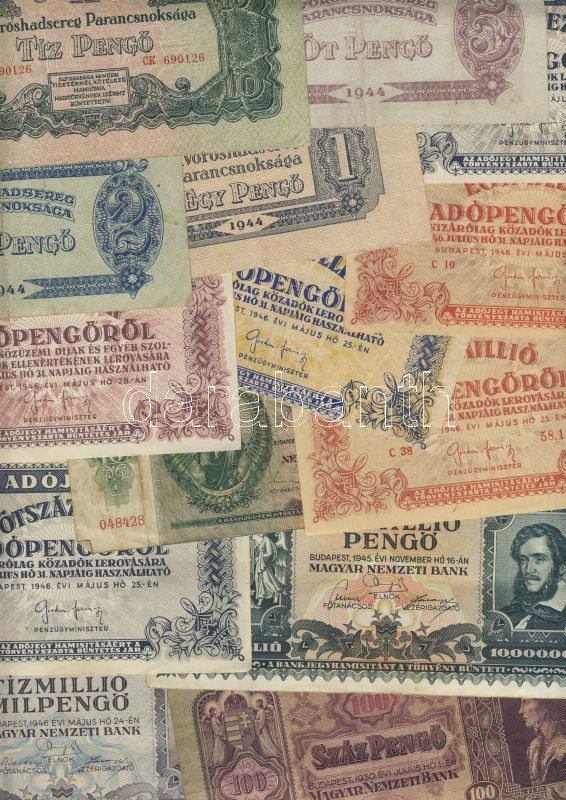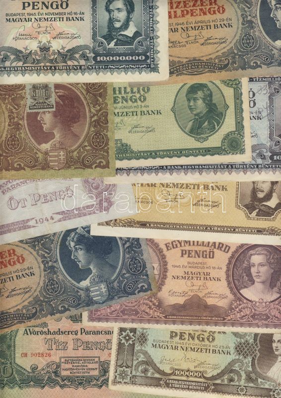 Leírás: Vegyes bankjegy tétel, 374db magyar és 62db külföldi, benne jobbakkal T:II+,II,III,IV